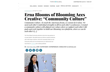 ![]()  Thrive Global MagazineErna Blooms was featured in Thrive Global magazine in April 2021, where she about her vision and passion in building Blooming Aces Community culture. Unfortunately, their link is no longer available. Something we learned recently, and will note to capture the article screenshots in the future. We all are learning, Aces ;).